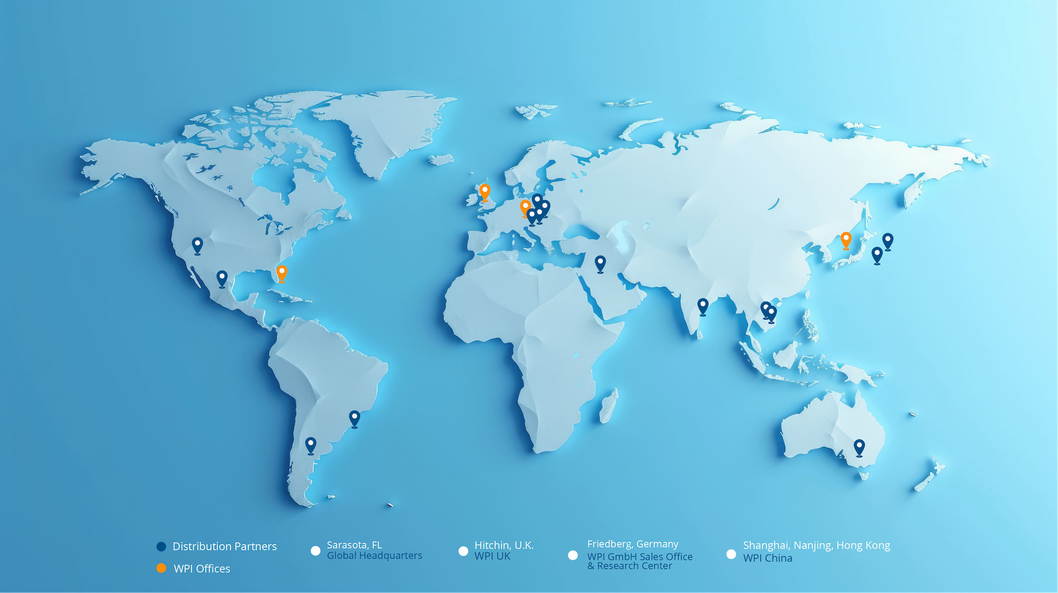 World Precision Instruments has an extensive global network, operates in all major regions, and provides a global network of distribution partners. With four offices and distributors around the globe, WPI works with scientists in research labs in pharmaceutical companies and universities to design and manufacture solutions that push the boundaries of discovery and improve the lives of modern people.