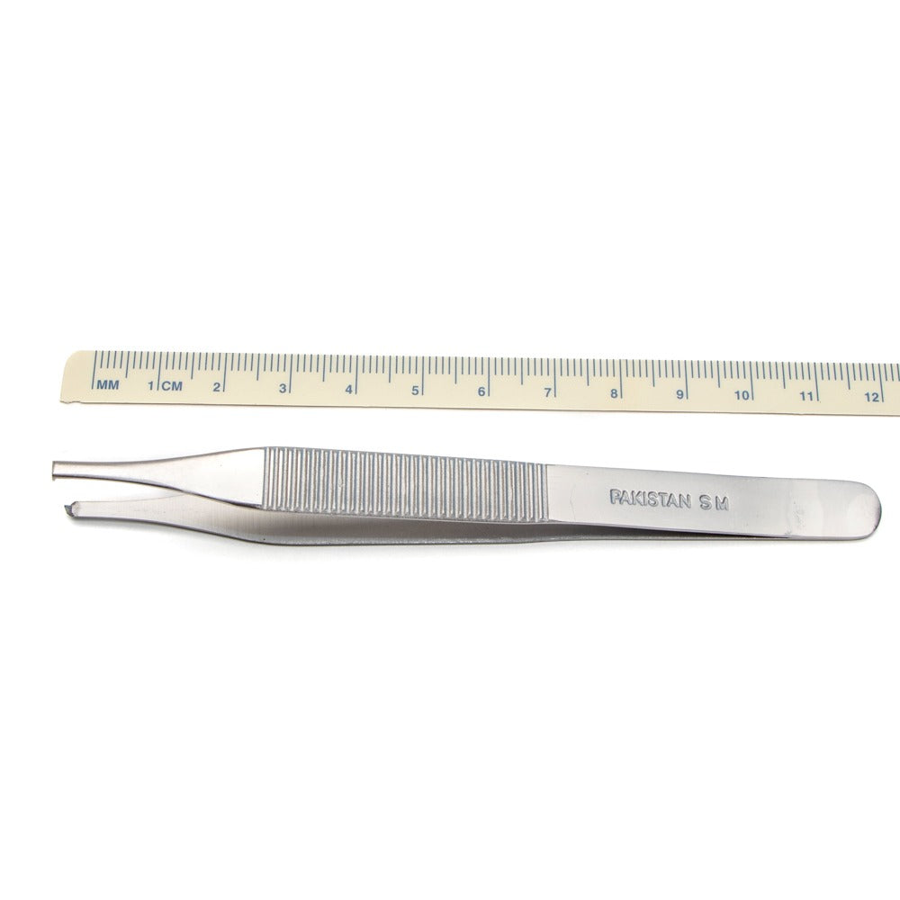 Adson forceps have a toothed tip for working with dense tissue, such as skin closures.