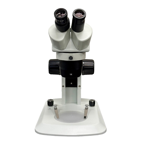 A modular PZM series-compatible track stand featuring illumination and stage plate. Allows for movement of stereo microscope head to move up and down along track stand, with total Z-travel of 4.5". Built-in top-down and bottom-up illumination; the 76mm focus mount has a top LED light built-in, and bottom LED light is embedded in stage base.