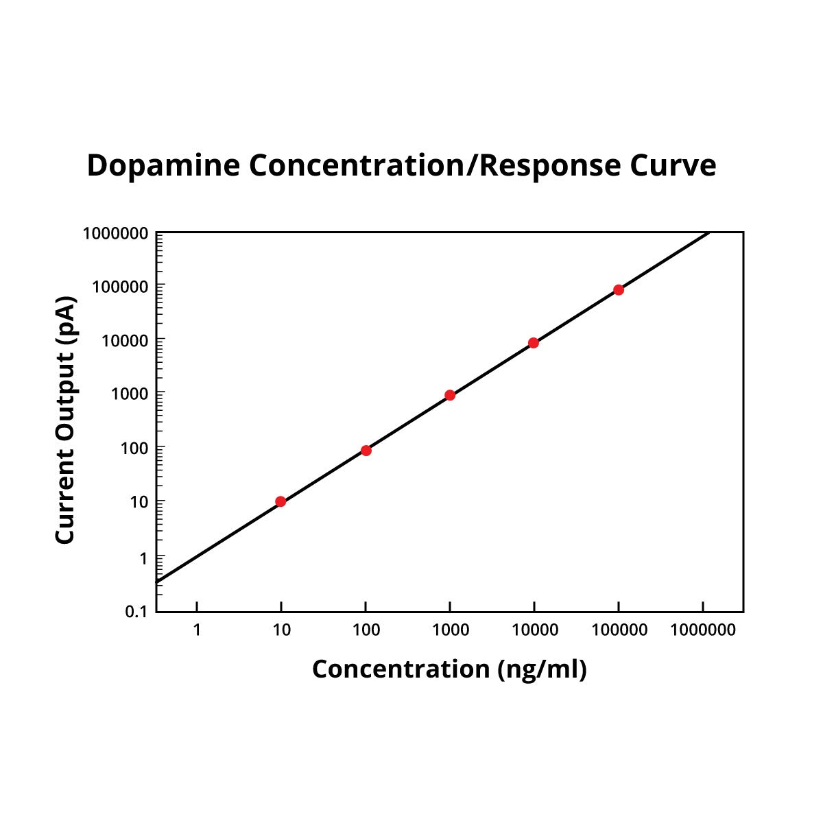 Fig. 1-Excellent linearity in response of carbon fiber electrode (CF30-500) to dopamine recorded on a MicroC. Courtesy: Drs. D Yeomans and X.-T. Wang, University of Illinis at Chicago.