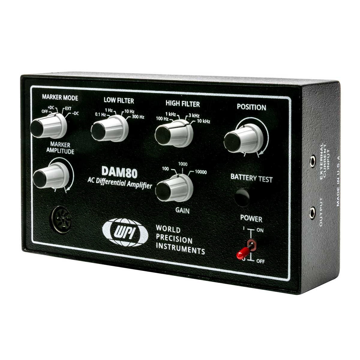 WPI’s DAM series amplifier’s are well known as a standard of the industry for extracellular potential amplification. These battery powered bio-amplifiers are designed with a compact chassis profile that enables the user to locate the unit closer to the preparation and thereby minimize long lead lengths which contribute to noise. Each amplifier is equipped with selectable high and low filters, and a position control to offset galvanic potentials which may develop during recording.