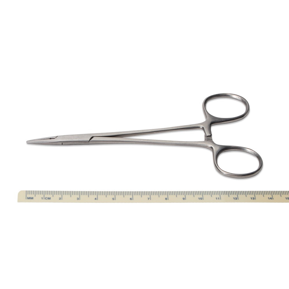 Halsey needle holders are used to hold and manipulate surgical needles during procedures. Halsey needle holders have a scissor-like jaw design with a flat, blunt tip. They have a locking mechanism to secure the jaws as they grasp the needle firmly. While Halsey needle holders are available in sizes from 4 to 7 inches, these are 5.5" long. Choose the size of your needle holders (also called needle drivers) based on the size of your needles.