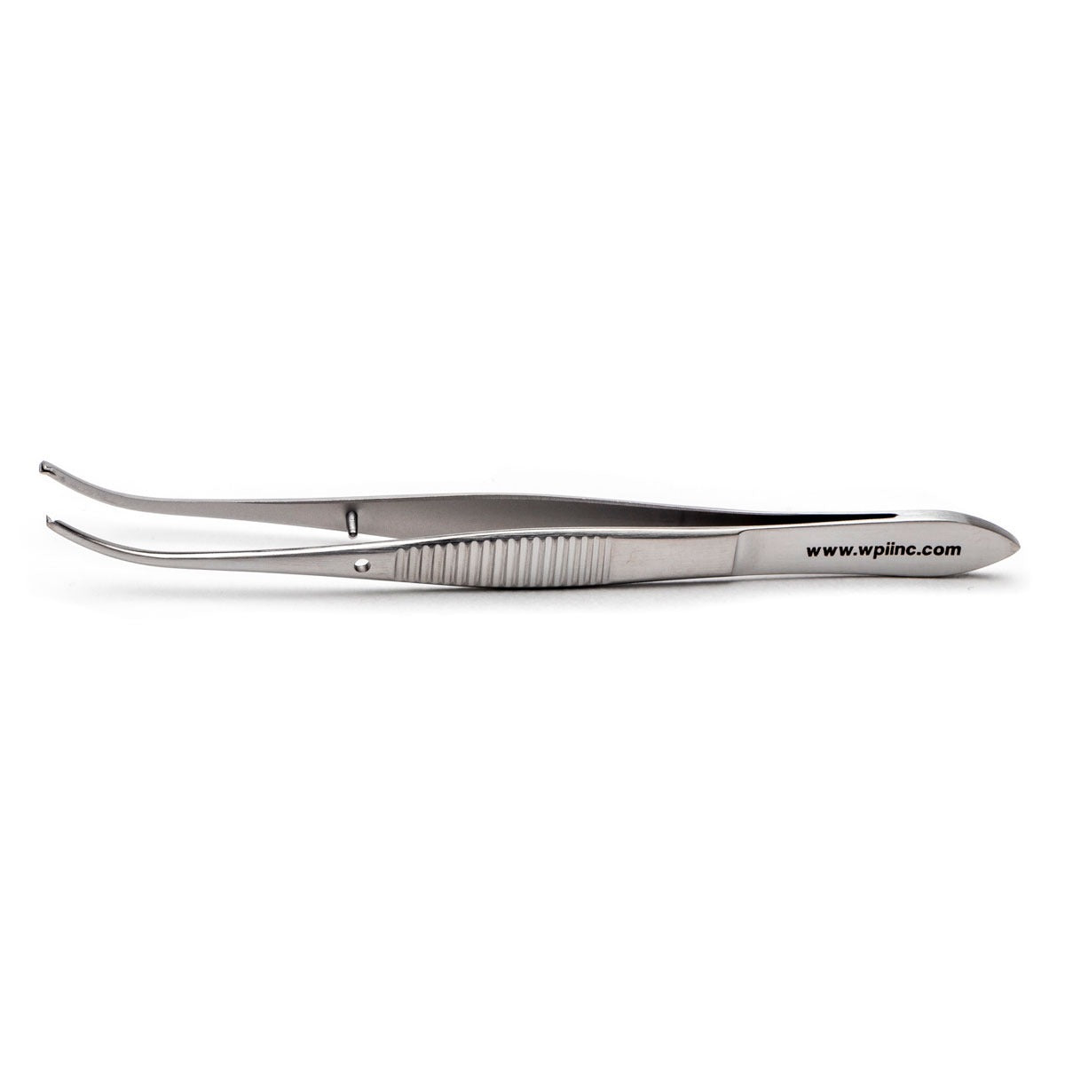 Iris forceps are a pair of surgical forceps (tweezers) often used in ophthalmic procedures. In the early 1800s, a Johann Friedrich Horner, a German ophthalmologist, began design surgical instruments specifically for use in the eye. The result of his work became one of the earliest iris forceps. Iris forceps are a small pair of forceps with a fine pointed tip for grasping delicate tissue with minimal trauma. The narrow jaws of these surgical forceps allow for fine manipulation of structures like the iris of the eye. These forceps are 10cm long with 0.8mm tips, and they come with straight or curved tips. These Iris Forceps have teeth (1x2). One blade has one tooth and the other has two. The blades align so that the teeth fit together. If the tissue to be grasped is slippery or hard to hold, surgical forceps with teeth offer a firmer grasp. However, the teeth may cause some tissue damage. The teeth can puncture or tear delicate tissue, or they could leave indentations or marks on the tissue. For delicate tissues, choose serrated tips. For hard to hold structures, choose tips with teeth. These Iris Forceps are manufactured with surgical grade stainless steel or premium German steel, both of which are autoclavable. WPI recommends properly cleaning all your surgical instruments promptly after use. This improves the useable lifespan of your surgical tools.