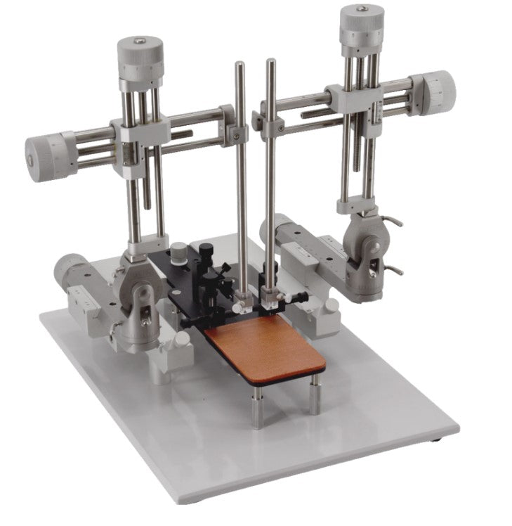 Add another manipulator arm for increased versatility. Often used for electrophysiology studies that requires both recording and stimulation.